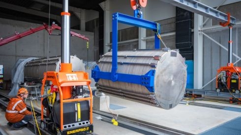 Innerhalb von vier Tagen rollten acht Blöcke eines 10 MW Druck-Alkali-Elektrolyseurs des Herstellers Sunfire auf Sattelschleppern auf das Areal von RWE. Mit einem Portalkran auf Schienen wurden die je 15 Tonnen schweren Bauteile auf ihren Bestimmungsort in einer extra dafür errichteten Halle gehoben. Je vier Blöcke werden dort zu knapp zehn Meter langen Stacks zusammengebaut.