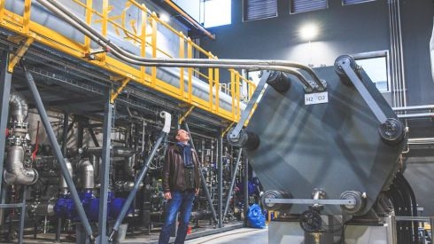 Core technology: a pressurized alkaline electrolyzer from the German electrolysis manufacturer Sunfire. With an overall capacity of 3.2 MW, the plant splits water into hydrogen and oxygen. The whole process runs at a pressure of 30 bar. Since the electricity for the electrolyzer comes from renewable sources, the hydrogen production is 100 percent CO2-neutral.